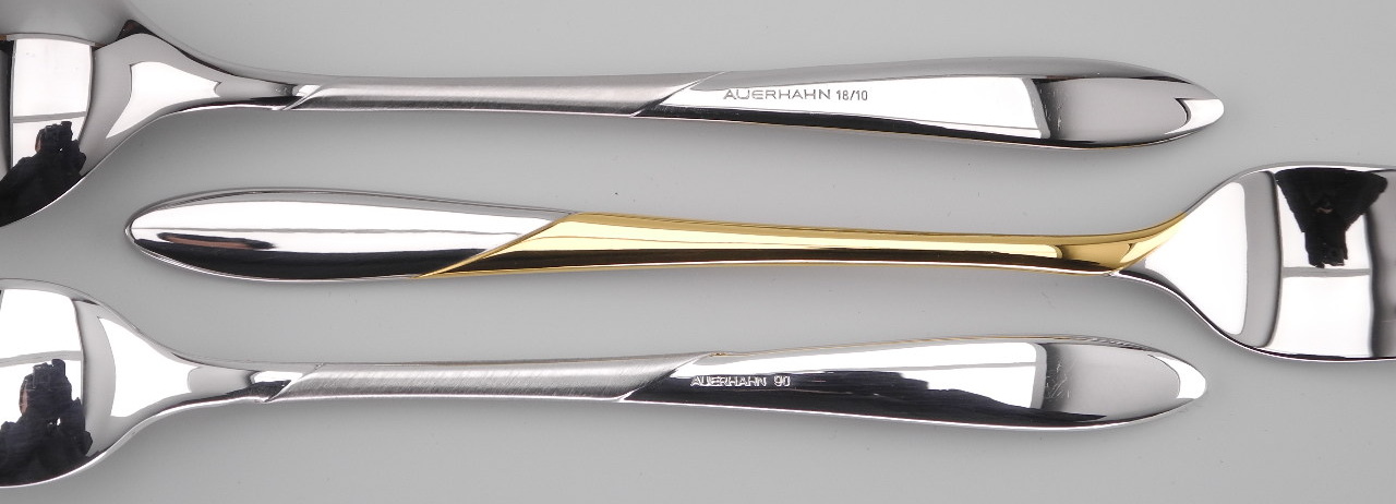 Das Besteck Elcada wurde von Auerhahn in Edelstahl, versilbert und mit einer Dekorvergoldung angeboten.Bitte wählen Sie die gewünschte Ausführung: