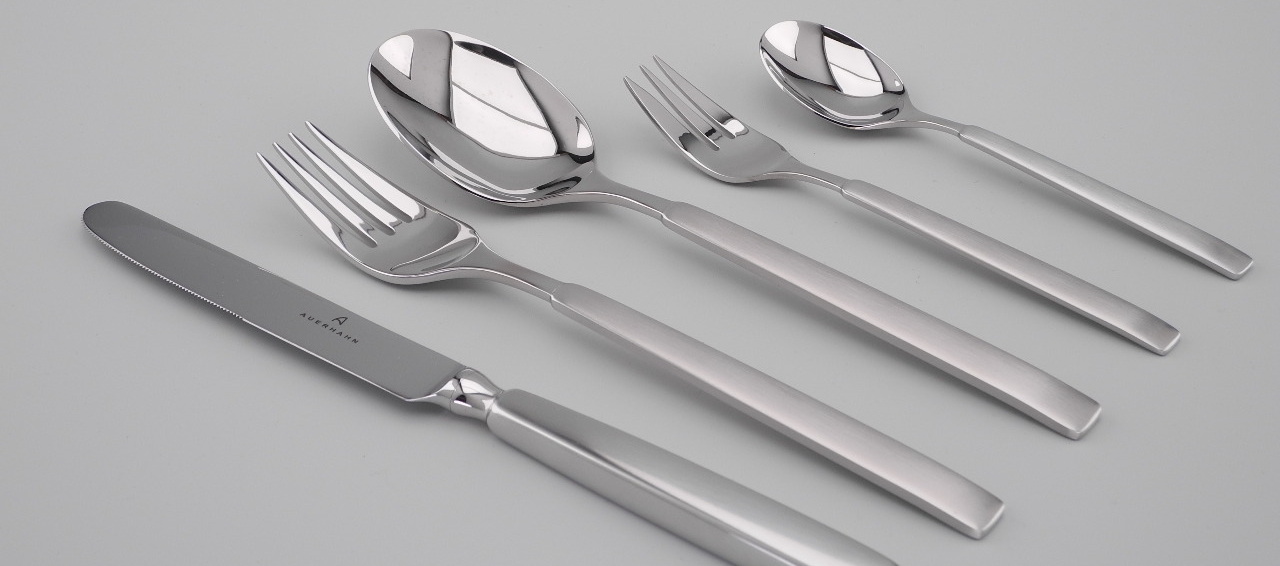Die Besteckserie Interio von Auerhahn zeichnet sich durch ihr schlichtes Design aus und stammt aus den 90er Jahren.